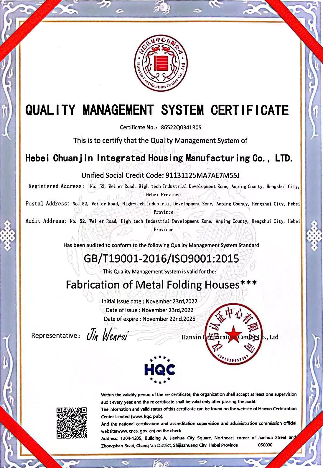 Hebei Chuanjin Integrated Housing Manufacturing Co., Ltd. was established in 1988.It is a comprehensive leading enterprise integrating manufacturing, processing and export of metal products.The company has more than 600 employees, the factory area of 13,000 square meters, annual output value of about 42 million US dollars.